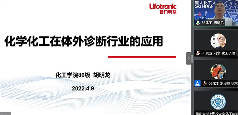 分享了化工过程强化及资源循环利用研究成果及应用;普门科技董事及总经理、86级化工胡明龙分享了化学化工在体外诊断中的应用,重点介绍了普门科技在医疗器械领域的技术优势,及其对研发的重视和广泛的客户基础。两位特邀报告人的报告内容干货满满,引起了91看片