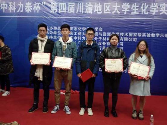 2017年12月1日至3日,“中科力泰杯”第四届川渝地区大学生化学实验竞赛总决赛在重庆工商大学举行,在重庆市第一届大学生化学实验竞赛暨第四届川渝地区大学生化学实验竞赛选拔赛中,我院有9名学生组成三支队伍参赛,最终两支优胜参赛队同荣获重庆市第一届大学生化学实验竞赛的其它优胜参赛队和荣获四川省第一届大学生化学实验竞赛的优胜参赛队等18所高校的27只参赛团队参加了此次总决赛。