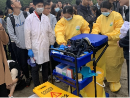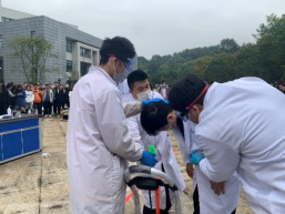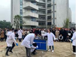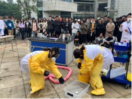 旁的室外广场开展了实验室危险化学品泄漏应急演练活动。91看片