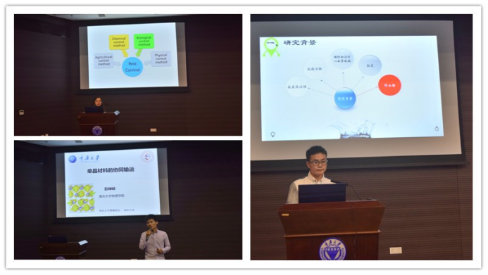 的彭坤岭博士纷纷为我们带来了《碳源调控蝗绿僵菌产孢模式转换的机制研究》、《高纯度萝卜原花青素二聚体的制备研究》、《单晶热电材料性能的协同优化》的精彩分享。一次又一次的引发了在场学术达人与老师们的激烈讨论,将此次硕博论坛进一步推向高潮!让同学们尽情畅游在学术的海洋!