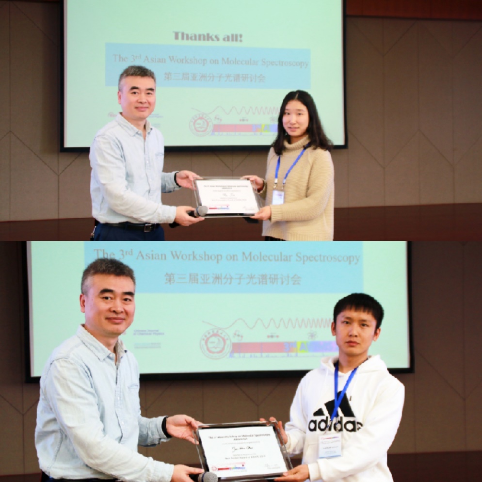 会议结束前,各位专家教授对参会学生的口头报告以及海报进行了评选以及颁奖。我院博士研究生靳堰同学以及陈军华同学分别获得了“最佳口头报告奖”以及“最佳海报奖”。