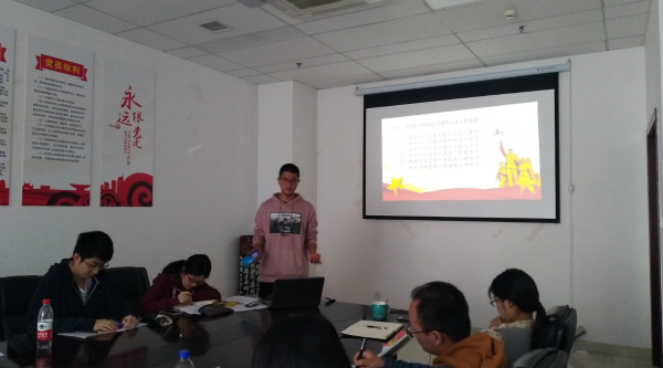 主持人柴同庆怀着饱满的热情为大家介绍了许多青年革命志士的光荣事迹,杨靖宇、赵一曼、江竹筠... ...那一个个勇于担当、敢于为党和国家奉献一切的鲜活形象呈现在大家眼前,他们的事迹让人心潮澎湃、热血沸腾,极大地鼓舞了青年党员们。青年党员应当担负时代责任,弘扬五四精神,坚定实现中华民族伟大复兴的中国梦的信心与决心。王千雨同志激动地表示,“青年人的力量是强大的,青年人在历史进程中的作用不可小觑”,作为新时代青年,依然要“继承革命先辈的历史传统,甘于奉献、勇于奉献”。随后,蒋星、马侑才等同志也纷纷发表了自己的感悟与体会。谢丽同志总结道“我们要坚定文化自信”,对中国历史传承发展与传统文化要有认同感,大学生应“明辨是非,恪守正道”,多思考、多总结,对自己有更高的要求,更好地为新时代中国特色社会主义事业添砖加瓦。