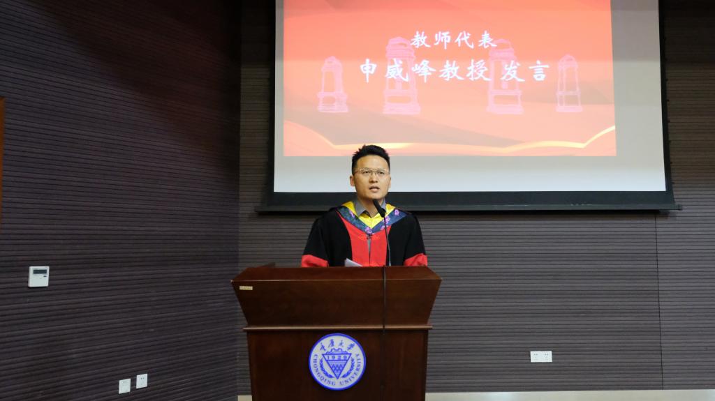 的学习,除了专业素养和技能的提升,同学们也在修炼一种本事,就是解决复杂问题,面对复杂问题的本事,一种在不确定性中追求确定性的本事。就像即使看到了人生百态,依然坚守善良和真诚,保持热爱。因为你热爱拥抱生活,生活也会拥抱你。站在这百年未有之大变局,作为重大毕业生,理应勇于担当,追求卓越,为中华民族伟大复兴而奋斗。愿你们在未来的道路上成长为智者、仁者、勇者。”