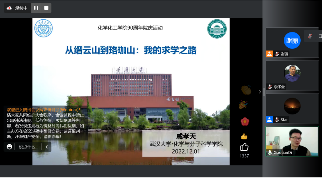 戚孝天带来了《从缙云山到珞珈山:我的求学之路》的经历分享。党委副书记李泽全、部分91看片