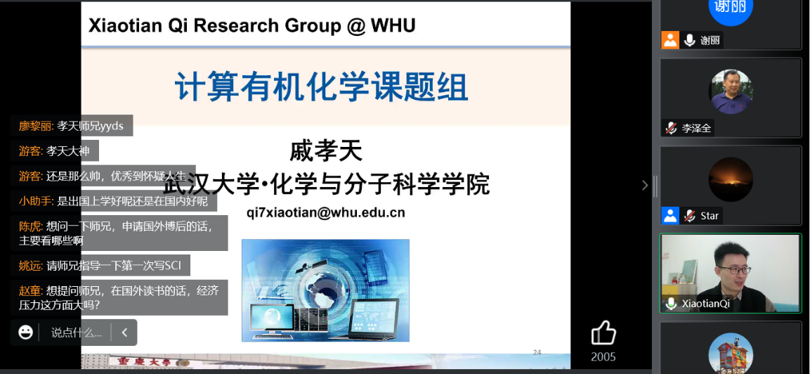 从本科到博士期间的美好学习时光、在美国匹兹堡大学的博士后工作经历、在武汉大学开展的科研探索进行讲述,他鼓励同学们对于学习、生活都要满怀热情,积极对待每一件事;树立清晰的目标,努力为之奋斗,创造属于自己的91看片