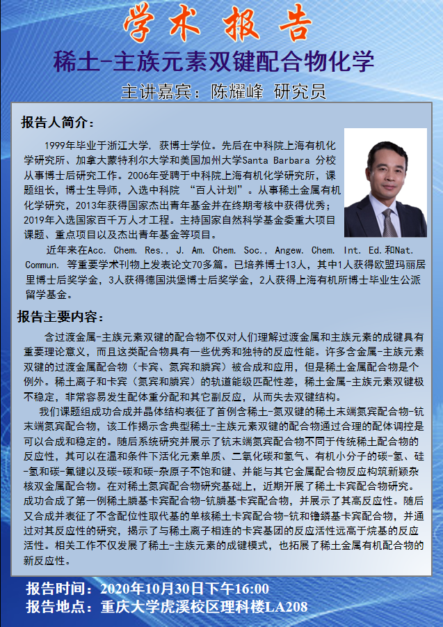 稀土-主族元素双键配合物化学 陈耀峰研究员