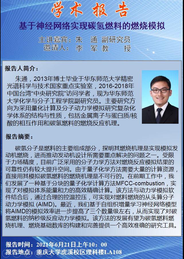 基于神经网络实现碳氢燃料的燃烧模拟 朱通副研究员