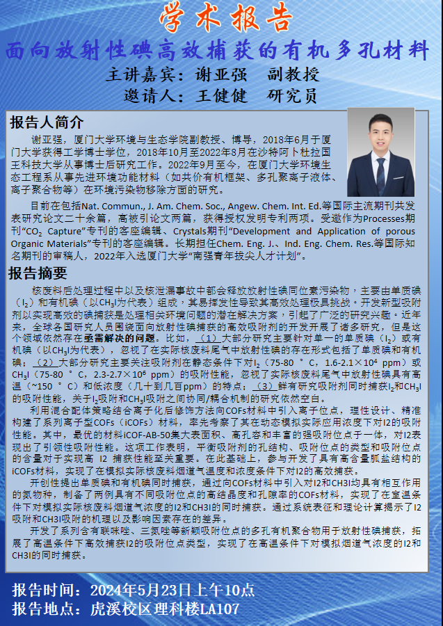 面向放射性碘高效捕获的有机多孔材料