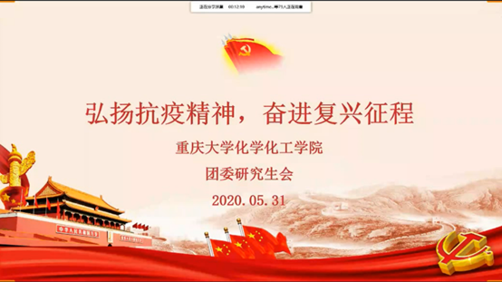团委研究生会举办的“弘扬抗疫精神,奋进复兴征程”研究生主题党团活动,通过线上QQ视频分享顺利举行。此次活动由2019级研究生杨贵媛同学主持。