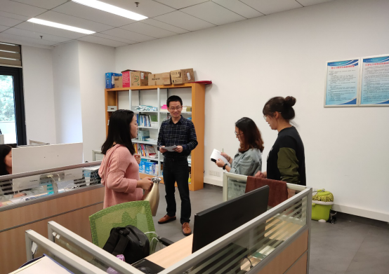 走访过程中,辅导员与各位博士生进行交谈,细致的询问了大家的日常生活、学习科研等情况,并提醒同学们注意国庆假期期间的人身、财产、实验安全,尤其是在国庆假期期间做实验的同学更要确保安全。在寻访过程中,特别着重强调了,当前博士生同学也有自己的组织了,遇到有任何学习生活相关的问题,可以寻求博士生年级组的帮助。并对各实验室的在读硕士研究生进行了转博、考博的鼓励和动员。