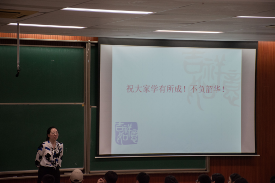 此后,伍丽为帮助新生尽快适应并融入大学生活提出了几条宝贵意见,包括英语四六级考试的准备工作以及如何自我管理与规划并以幽默风趣的口吻讲述了几个小故事,让新生们在轻松愉快的氛围中,理解提前规划大学生活的重要性。