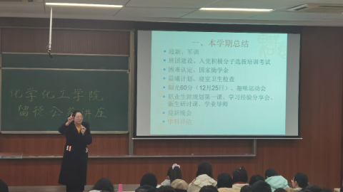 于虎溪校区D1333召开2020级年级大会。20级辅导员伍丽老师及20级全体同学出席了本次会议。伍老师对本学期工作进行了总结,并强调考试纪律与假期安全。