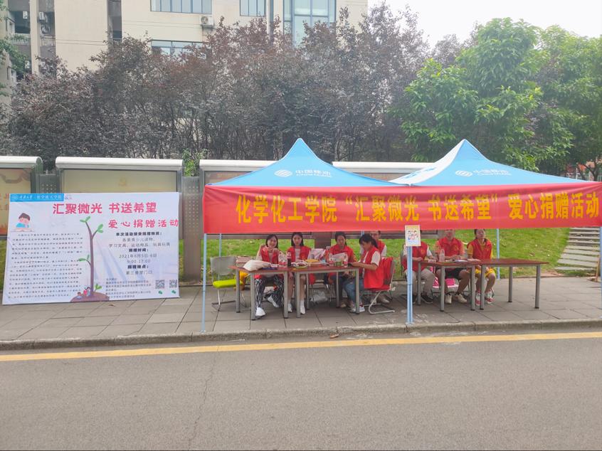 郭明义爱心分队、青年志愿者协会筹划的“汇聚微光,书送希望”爱心捐赠活动在虎溪校区第三食堂门口举行。活动旨在关爱荣昌区云教村留守儿童,建设云教村“小树苗”爱心书屋。