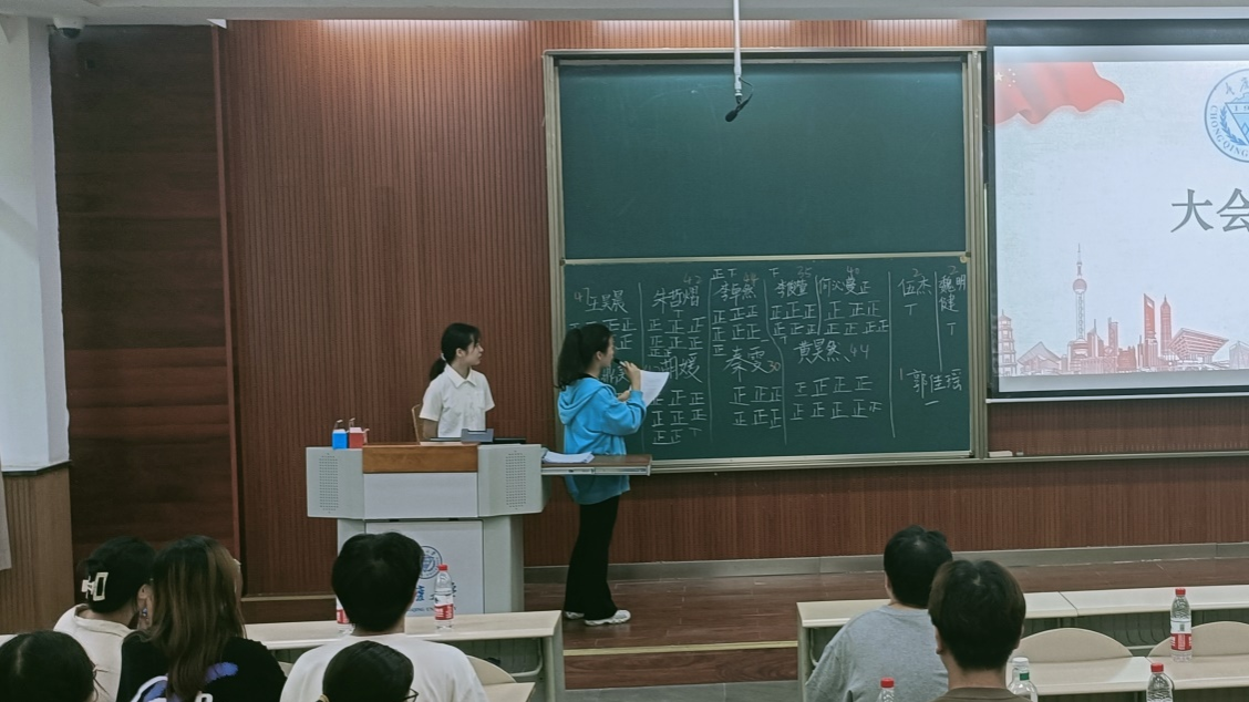 接着,王丹阳宣读大会选举办法并对九位候选人进行介绍。候选人:黄昊然,胡媛,王昊晨,何沁蔓,朱哲熠,秦雯,李卓然,郑鼎美,李俊萱。