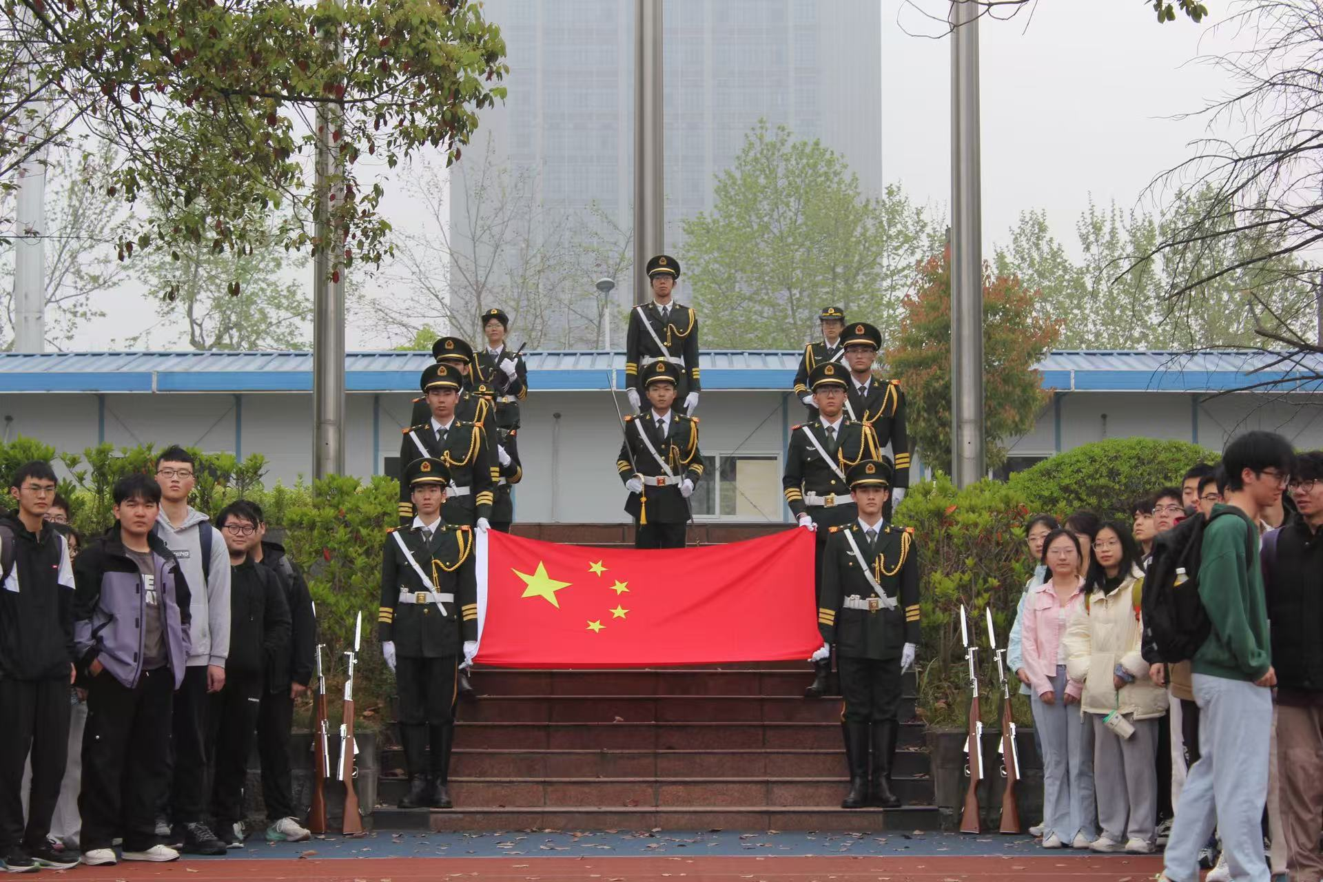 “升国旗,奏唱国歌”,国旗队迈着坚毅而挺拔的步伐,将五星红旗送到了国旗台上。五星红旗迎风飘扬,带着大家对新一周的希望与热情。